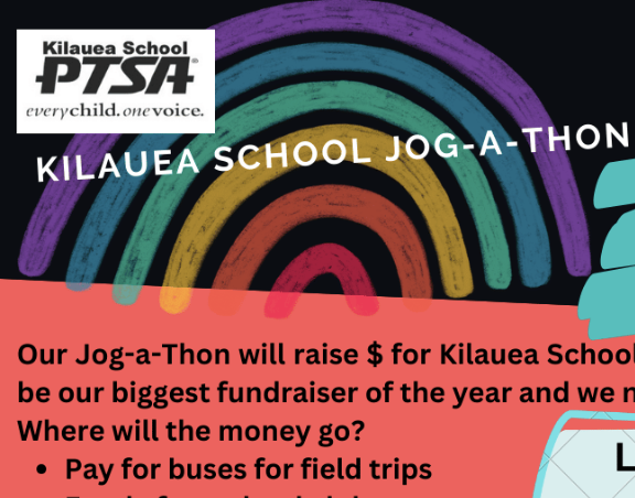 The Kilauea School PTSA hosts a variety of fundraisers throughout the year, and we need support both leading and helping at all them. Or, if you have an idea for a fundraiser to benefit the students, please email us or attend a monthly PTSA meeting (see calendar and news section).